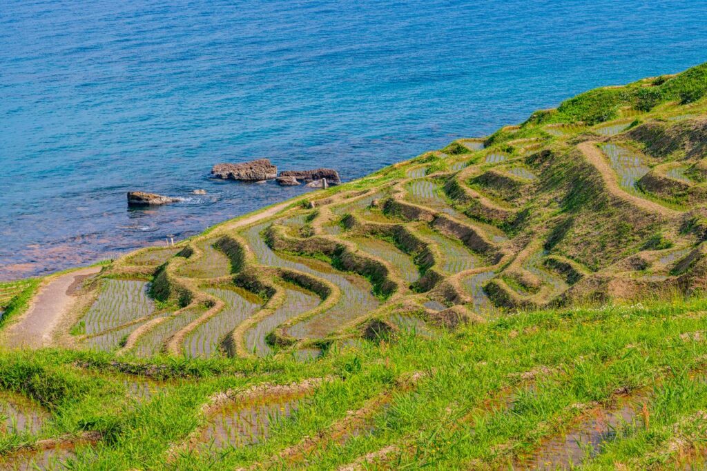 At Shiroyone Senmaida steep rice-field terraces overlook the sea.